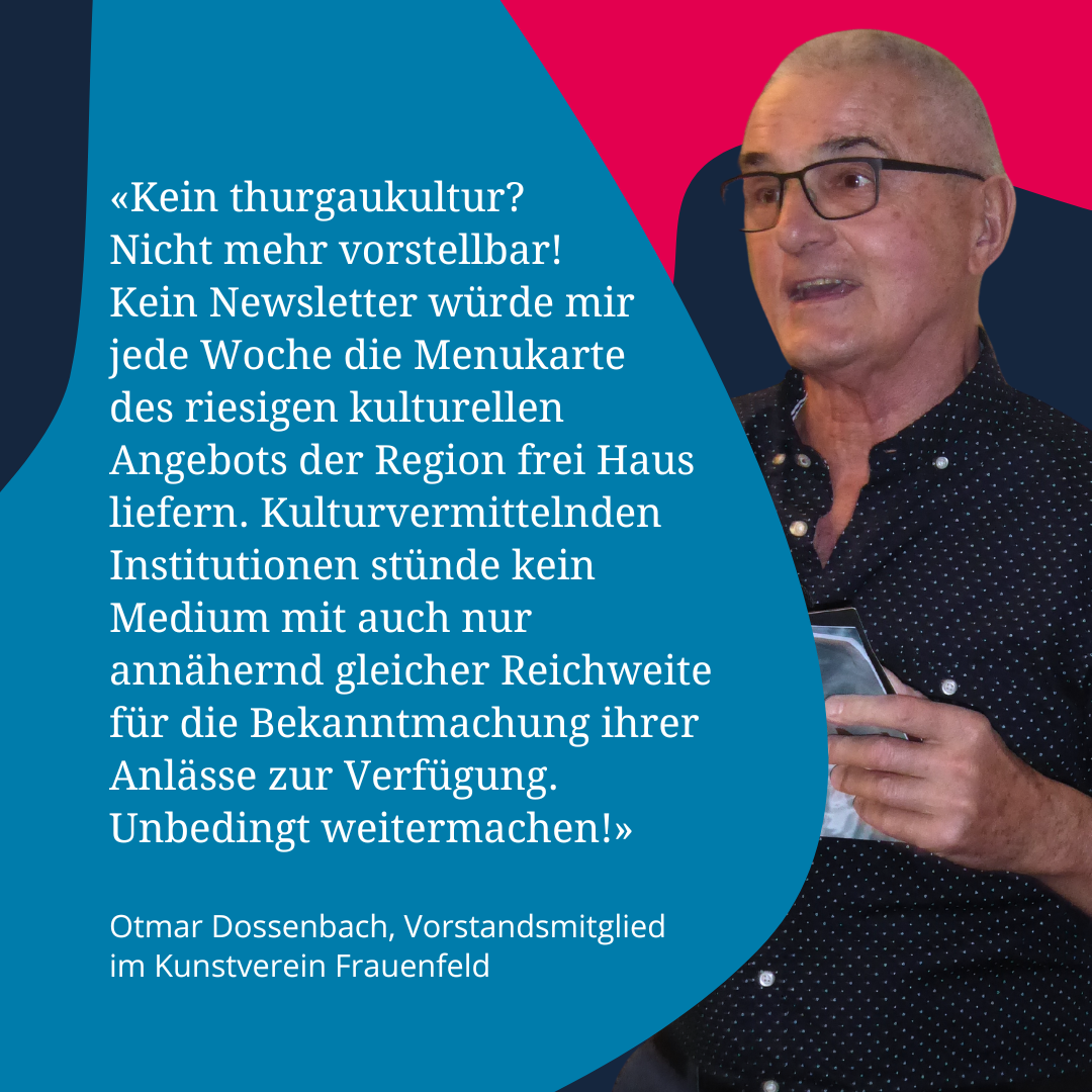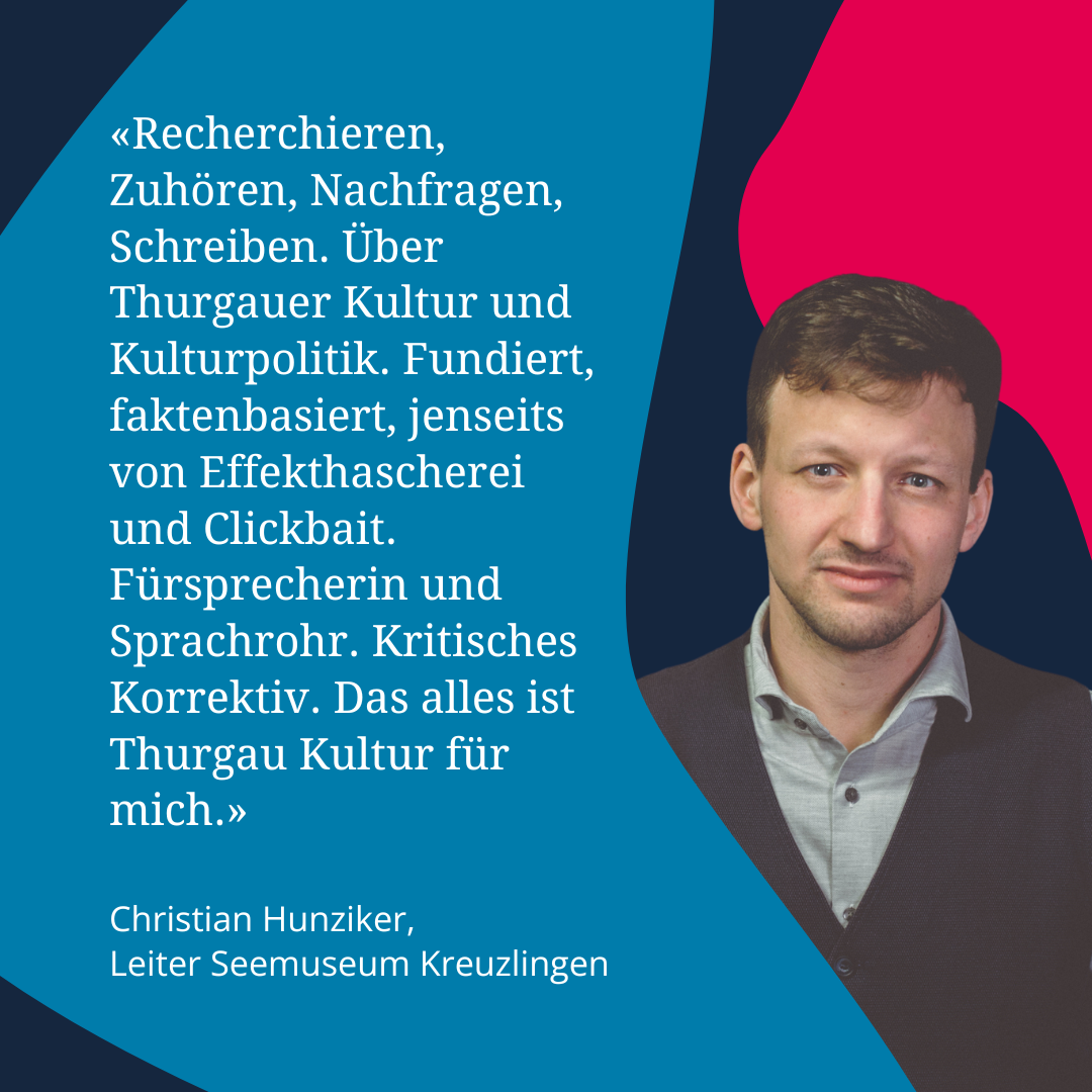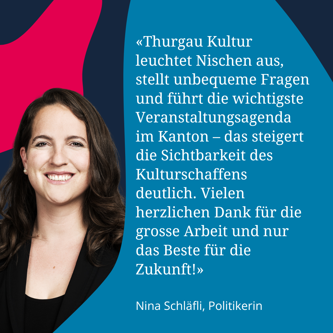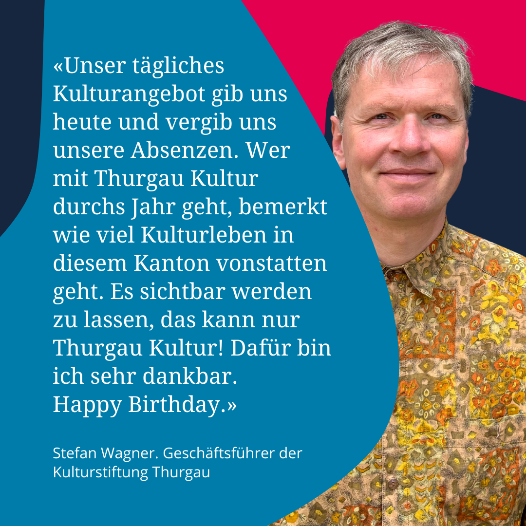 Neben dem Recherchefonds planen wir gerade weitere Aktionen im Jubiläumsjahr. Welche genau das sein werden, erfährst du selbstverständlich auf thurgaukultur.ch, im Newsletter (hier abonnieren) oder auf Social Media (hier folgen: Instagram, Facebook, LinkedIn).