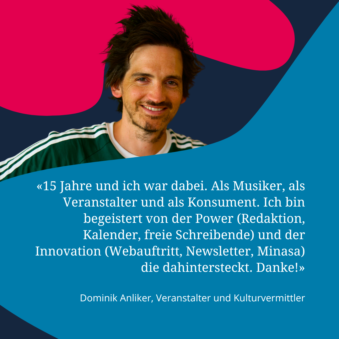 Nun - 15 Jahre später - veröffentlichen wir fast täglich Beiträge im Magazin, unterstützen Kulturakteur:innen beim Erfassen ihrer Agenda- und Kulturplatz-Einträge, verschicken jede Woche einen Newsletter, drehen Videos für Social Media, entwickeln unseren Service Culturel weiter - und noch vieles mehr.